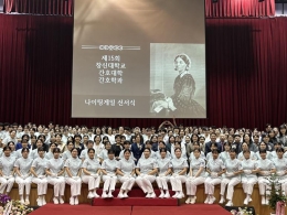 우리 대학 간호학과는 지난 10월 31일(금) 대강당에서 제15회 나이팅게일 선서식을 개최했다. 이번 선서식에서는 임상실습을 앞둔 121명의 2학년 학생들이 제15대 나이팅게일로 선출된 박서연 학생을 따라, 간호 실천의 의미와 가치를 새기며 인류의 건강과 안녕을 위해 헌신할 것을 다짐했다. 이날 행사에는 신희범 ...